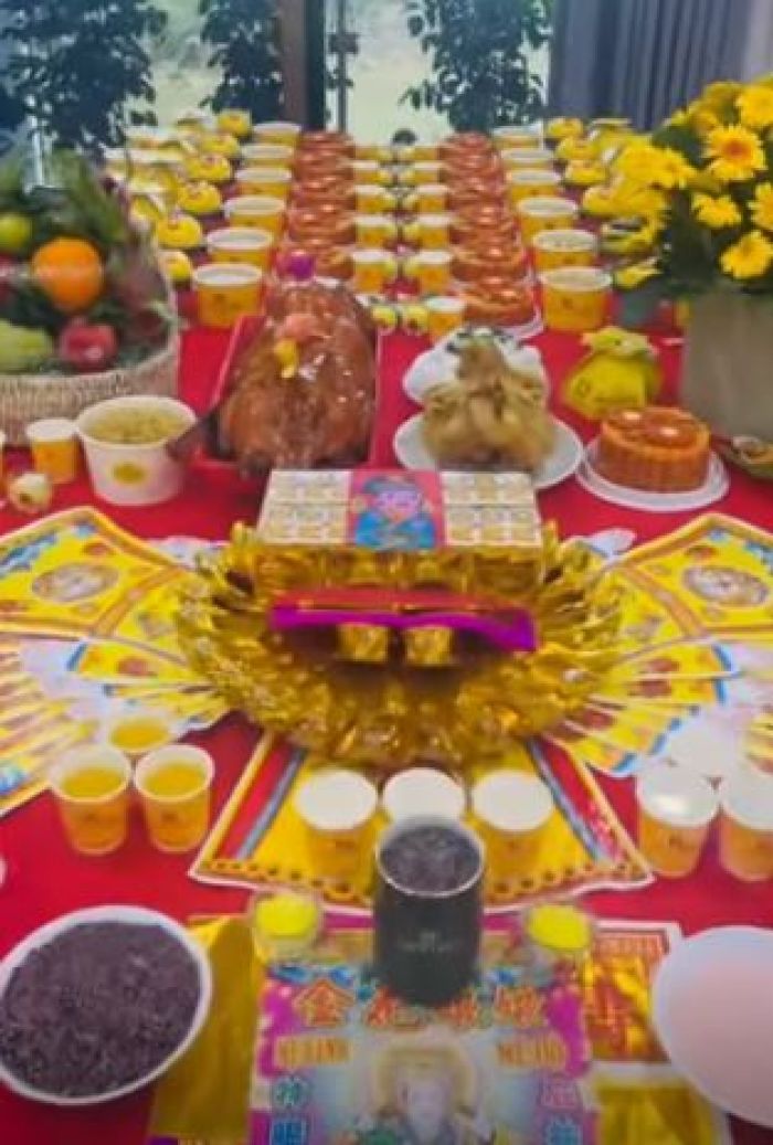 2kg thịt quay + bánh hỏi chia làm 12 đĩa + 12 ly rượu nhỏ. Hoặc không có thể thay bằng 12 trứng vịt + 12 ly nước nhỏ;