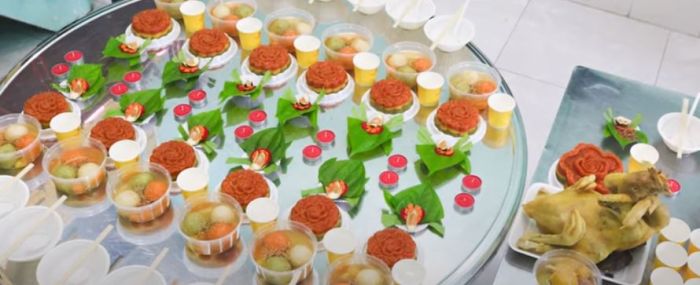 Chuẩn bị lễ trình tự: Theo thứ tự thắp hương, cúng bánh, cầu nguyện và phát quà cho khách mời.